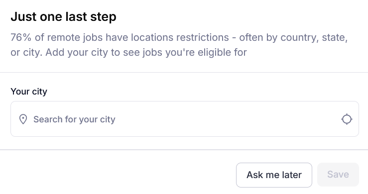 - Your city: Lets you select cities globally. Useful for location-restricted remote roles.