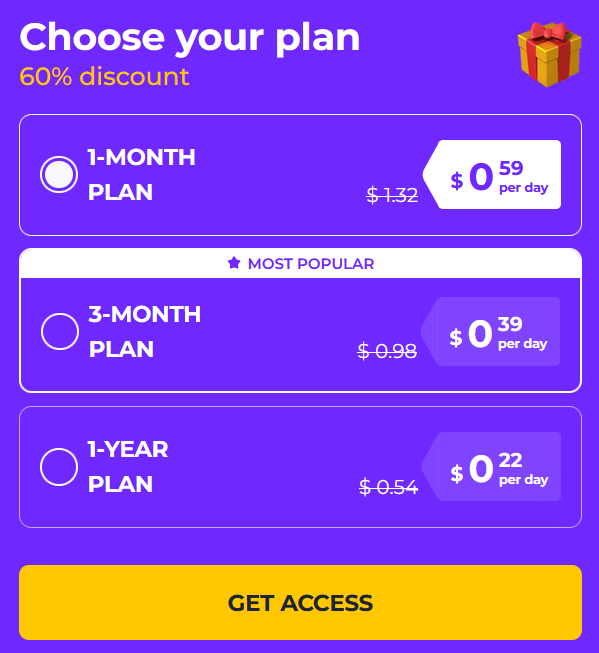 - 1-Month Plan: About $0.59 per day (roughly $17.70 per month)