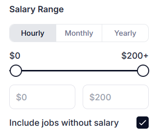 The slider allows you to define a minimum and maximum range, and there’s also an option to include jobs without salary information.