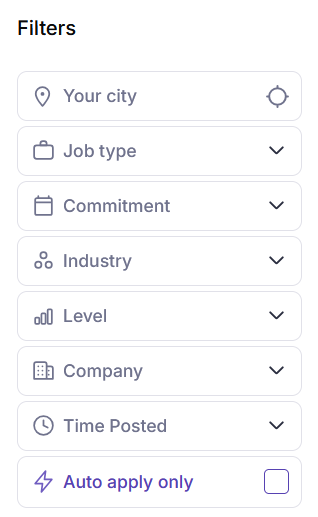- Auto apply only: A toggle that shows only roles supporting automated applications, when available.