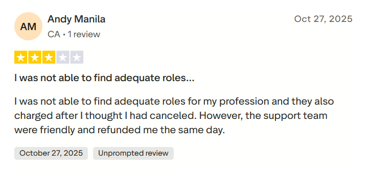 Some users report struggling to find roles that truly match their profession or experience level. The platform has a large volume of listings, but volume doesn’t always translate to fit.