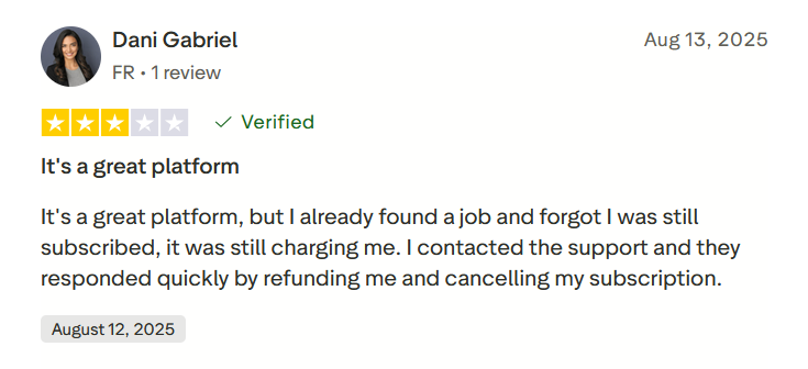 One user forgot an active subscription after finding a job, but reported that support handled refunds and cancellations quickly.