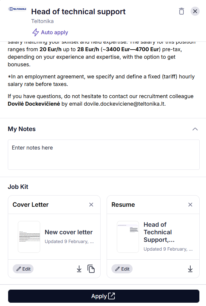 The auto-apply feature is one of the platform’s biggest selling points, but in practice, it applies to only a small portion of listings. Most jobs still require manual applications, and auto-apply works only for roles with a visible contact email that you manually like first.